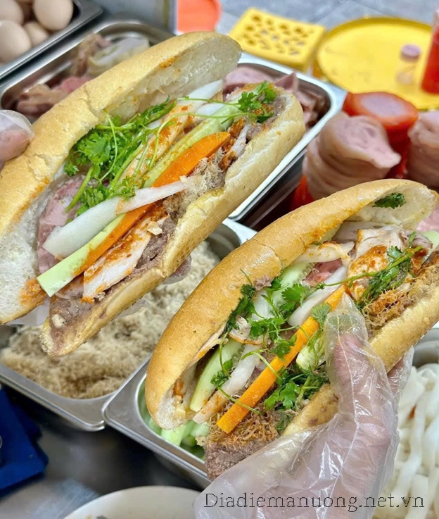 ( With its clean, spacious, and welcoming setting, along with the attentive and friendly service from the owner herself, this shop is an ideal spot to enjoy delicious bites with friends and family. The baguettes here are impressively large, crispy, and fragrant, generously filled with toppings that will make you savor every bite. You can choose from a variety of fillings to suit your taste. What truly sets the shop apart is that all the ingredients are handmade by the owner, ensuring great flavor and quality. The signature element is the rich, creamy egg-oil sauce made from her special recipe, paired with smooth, aromatic pâté and an assortment of premium cold cuts. It all comes together to create a uniquely satisfying bánh mì experience you won’t find anywhere else. )