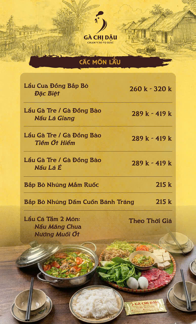 Hình thức trình bày bắt mắt, ấn tượng cùng hương vị thơm ngon, đậm đà đã chinh phục được các thực khách sành ăn nhất. Đến với Gà Chị Dậu, thực khách chắc chắn sẽ đều cảm thấy thỏa mãn, vừa dùng những món ăn yêu thích ngon lành vừa thoải mái “tám” chuyện với bạn bè, người thân hay đối tác.
