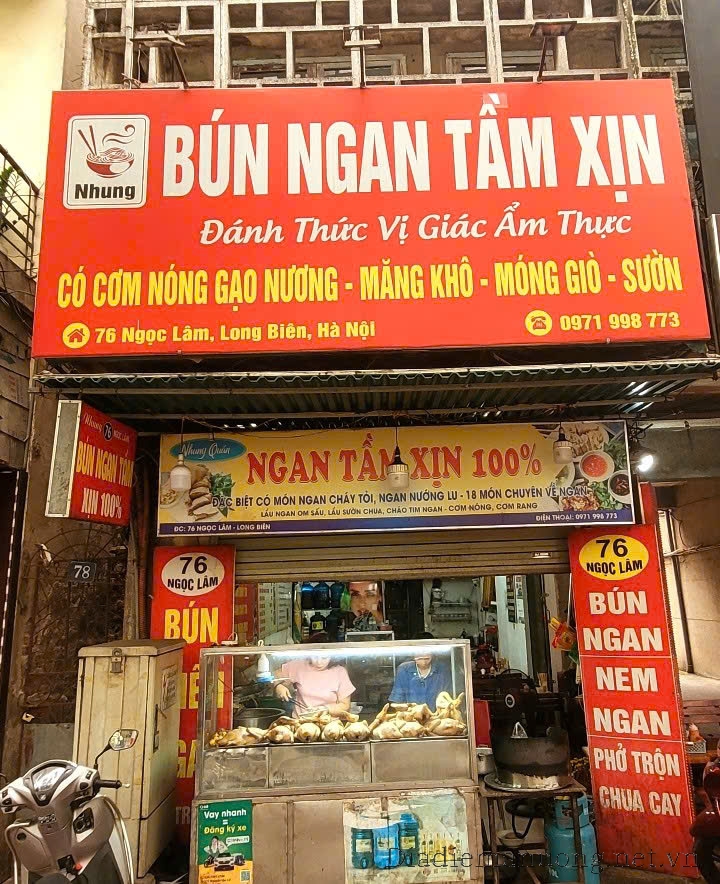 Bún ngan là một món ăn dân dã và phổ biến tại Hà Nội, món ăn này không chỉ thơm ngon, mà còn rất giàu dinh dưỡng. Ở Hà Nội chẳng khó để tìm một quán bún ngan nhưng để tìm được quán ăn ngon chuẩn vị thì không hề đơn giản. Xin giới thiệu tới thực khách sành ăn quán BÚN NGAN TẦM XỊN tại 76 Ngọc Lâm, Long Biên đang là địa chỉ uy tín của thực khách trong nhiều năm trở lại đây.