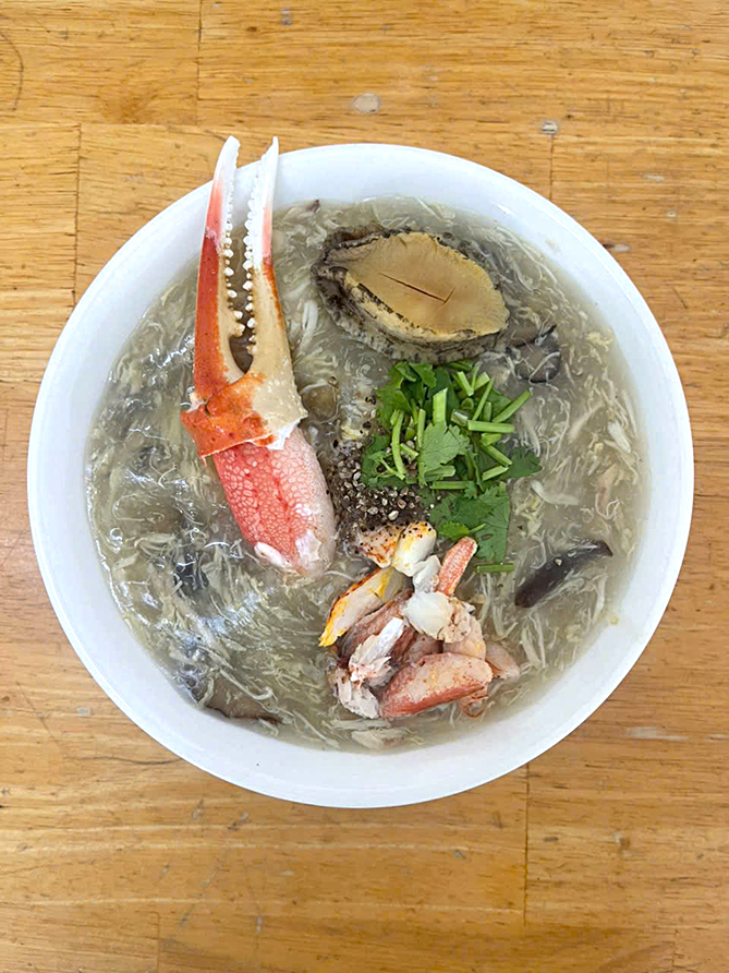 Không những vậy, quán Lộc Ký còn có thêm những món súp cua đặc biệt phải kể đến chính là súp cua bào ngư đặc biệt của quán. Súp cua càng cua tuyết, bào ngư và thịt cua xé vừa sang trọng, đậm đà nhưng vẫn thanh nhẹ, nước dùng ngọt tự nhiên, sánh mịn vừa phải. Càng cua tuyết chắc thịt, trắng ngọt, kết hợp cùng bào ngư giòn mềm và thịt cua xé tươi ngọt, tạo nên hương vị hài hòa, giàu dinh dưỡng và dễ thưởng thức.