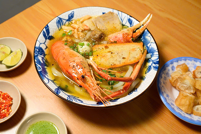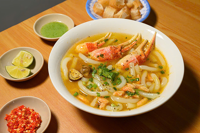 Đặc biệt, bánh canh cua phiên bản đặc biệt với tôm càng xanh và cua tuyết là lựa chọn dành cho những ai mê hải sản “xịn sò”, khi tôm càng xanh to, chắc thịt, ngọt đậm hòa quyện cùng cua tuyết thượng hạng, tạo nên tô bánh canh đầy đặn, béo vừa, đậm đà và cực kỳ đáng thưởng thức. Một tô là ấm bụng, ăn một lần là nhớ mãi.